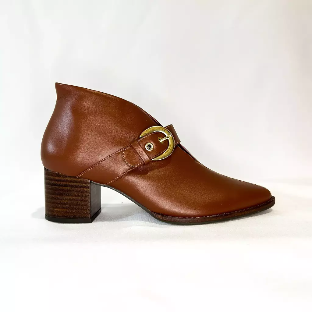 Bota salto médio com fivela em couro marrom, perfeita para quem busca elegância e conforto no dia a dia. Seu cano curto com corte em V alonga a silhueta e facilita o caminhar, enquanto a fivela traz um toque de sofisticação e modernidade. O salto bloco em altura média oferece estabilidade e estilo, tornando este modelo indispensável para compor looks versáteis e refinados.