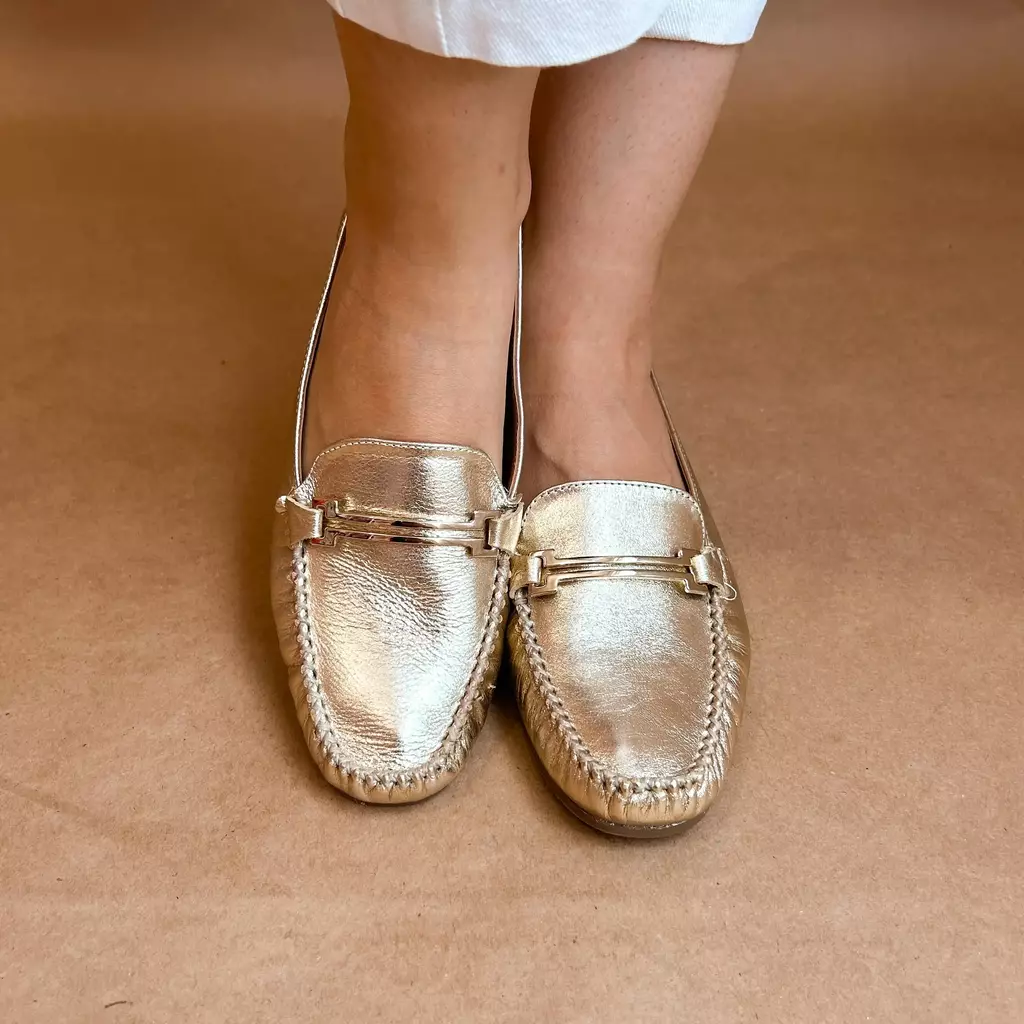 Confeccionado em couro super macio, este mocassim conta com um elegante detalhe em metal dourado, tornando-o ideal para transitar do trabalho ao passeio com estilo.