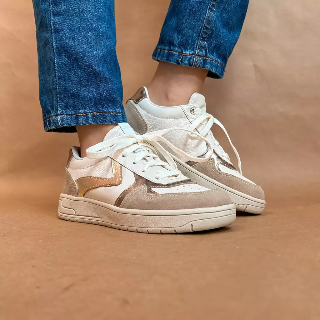 Descubra o charme do nosso tênis moderno com detalhes metalizados e o material da vez: camurça. Inspirado no clássico Jordan da Nike, este modelo traz um ar mais feminino e sofisticado.