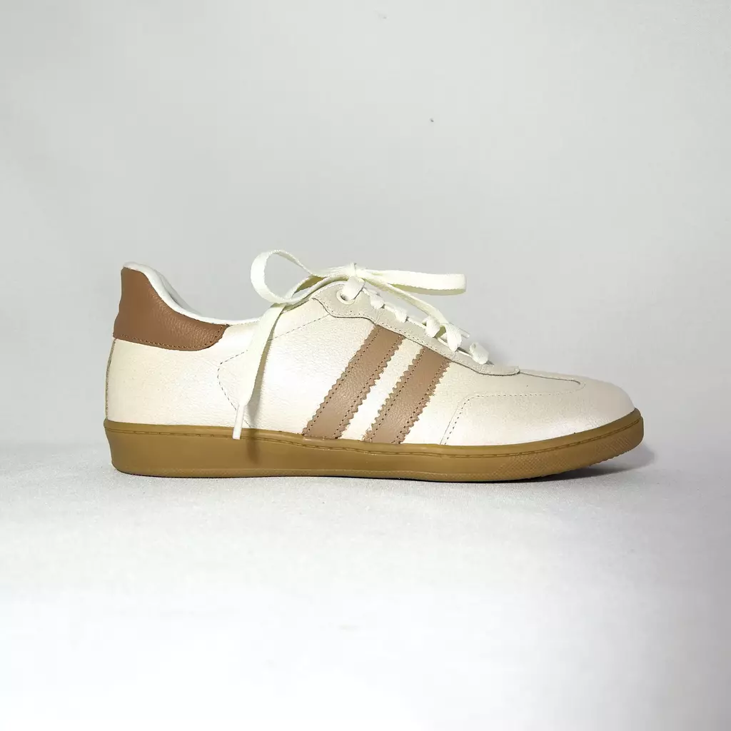 Tênis de design clean e sofisticado, com acabamento perolado que traz um brilho sutil e elegante. As listras laterais em tom nude adicionam um toque moderno e feminino, tornando-o uma escolha versátil para compor desde looks casuais até produções mais refinadas. Confortável e leve, é aquele modelo curinga que une estilo e praticidade em cada passo.