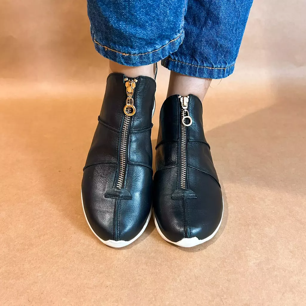 Descubra o tênis super estiloso com a gáspea alta e fechamento com zíper frontal. Feito em couro super macio, este modelo proporciona conforto excepcional e um toque despojado aos seus looks.